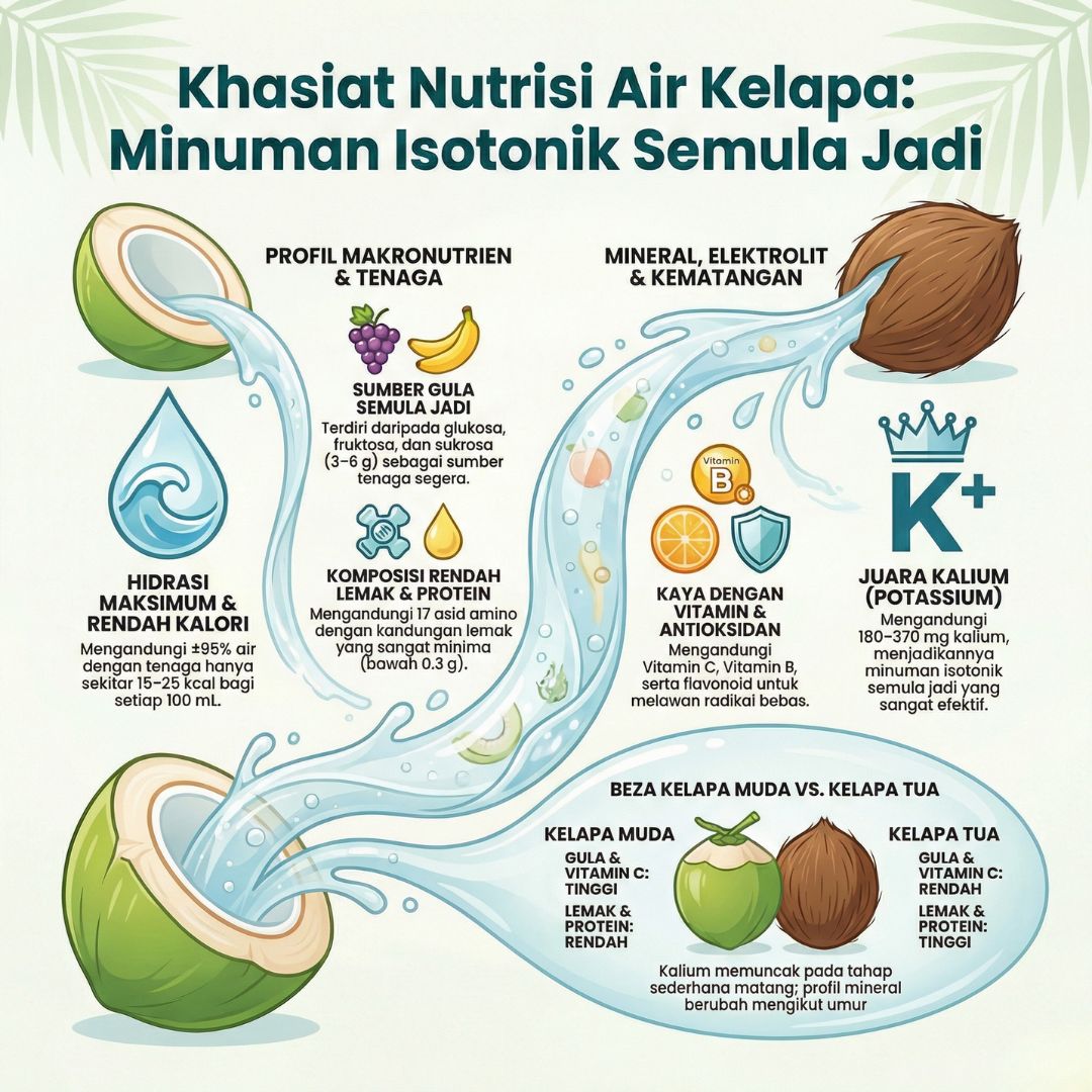 Siapa yang tak suka air kelapa, kan? Lagi-lagi kalau dapat yang sejuk di tengah panas terik Malaysia. Tapi, pernah tak kita terfikir kenapa lepas minum air kelapa, badan rasa instantly refreshed? Secara saintifiknya, ia bukan sekadar mainan perasaan. Air kelapa adalah satu keajaiban biochemical yang sering dipanggil sebagai minuman isotonik semulajadi.
