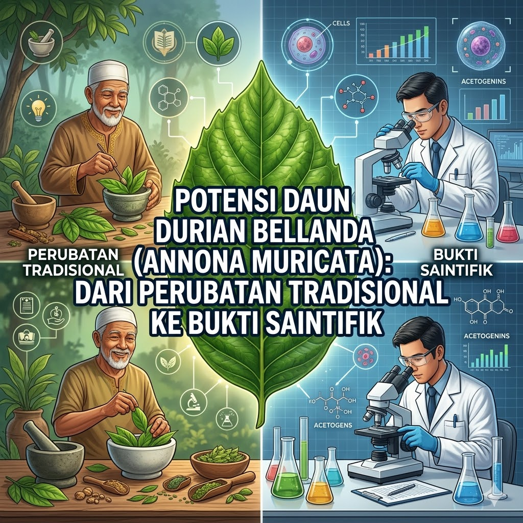 Durian belanda atau nama saintifiknya Annona muricata merupakan sejenis tumbuhan malar hijau daripada keluarga Annonaceae yang tumbuh secara meluas di kawasan tropika dan subtropika, termasuk Asia Tenggara, Amerika Tengah, Amerika Selatan dan Afrika. Tumbuhan ini bukan sahaja bernilai daripada sudut komersial melalui pengeluaran buah, malah turut mendapat perhatian dalam perubatan tradisional kerana hampir semua bahagiannya digunakan untuk tujuan kesihatan. Dalam konteks kajian moden, daun durian belanda menjadi fokus utama penyelidikan kerana kandungan fitokimia bioaktifnya yang pelbagai serta potensi farmakologi yang semakin banyak dilaporkan.